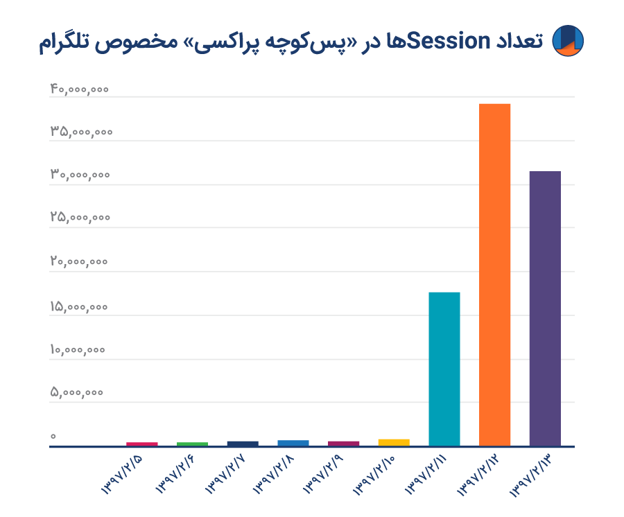 در نمودار زیر مشاهده میکنید که تعداد سشنهای پراکسیهای پسکوچه از حدود ۴۰۰ هزار در روز، طی یک هفته به حدود ۴۰ میلیون در روز رسید.