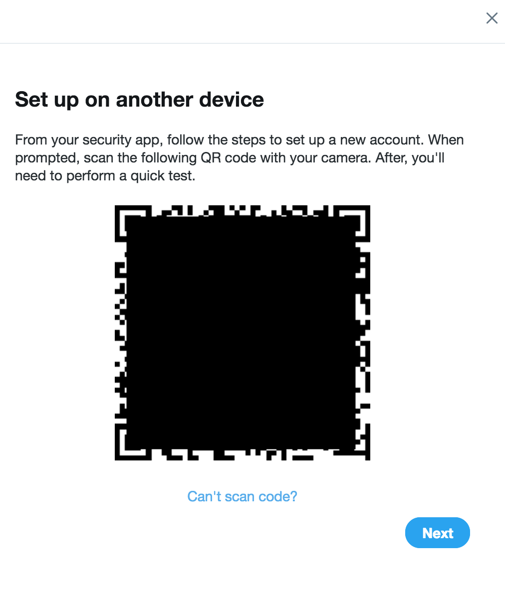 - QR کد توییتر را اسکن کنید و دکمهی Next را بزنید.
