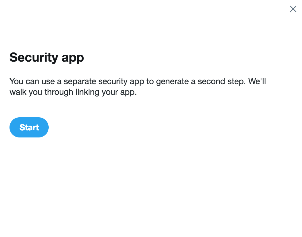 ۲.۲- در این مرحله، توضیح کوتاهی از توییتر دربارهی نحوه کار این ویژگی دریافت خواهید کرد. کافی است دکمهی Start را بزنید تا به مرحلهی بعدی یعنی فعال کردن تایید هویت دومرحلهای بروید.
