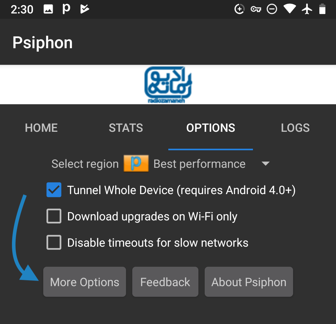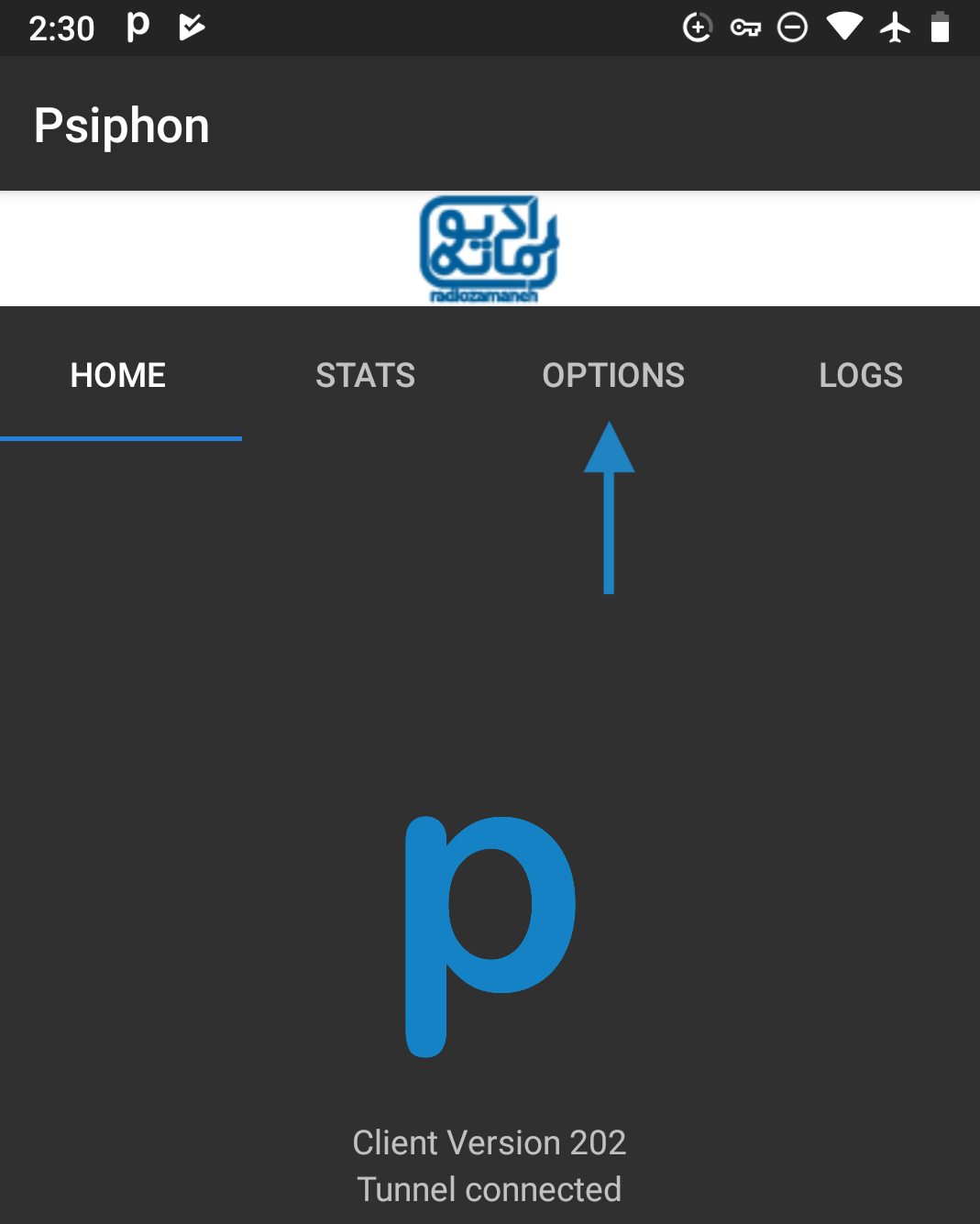 ۱ - قسمت تنظیمات (options) اپلیکیشن را انتخاب کنید.