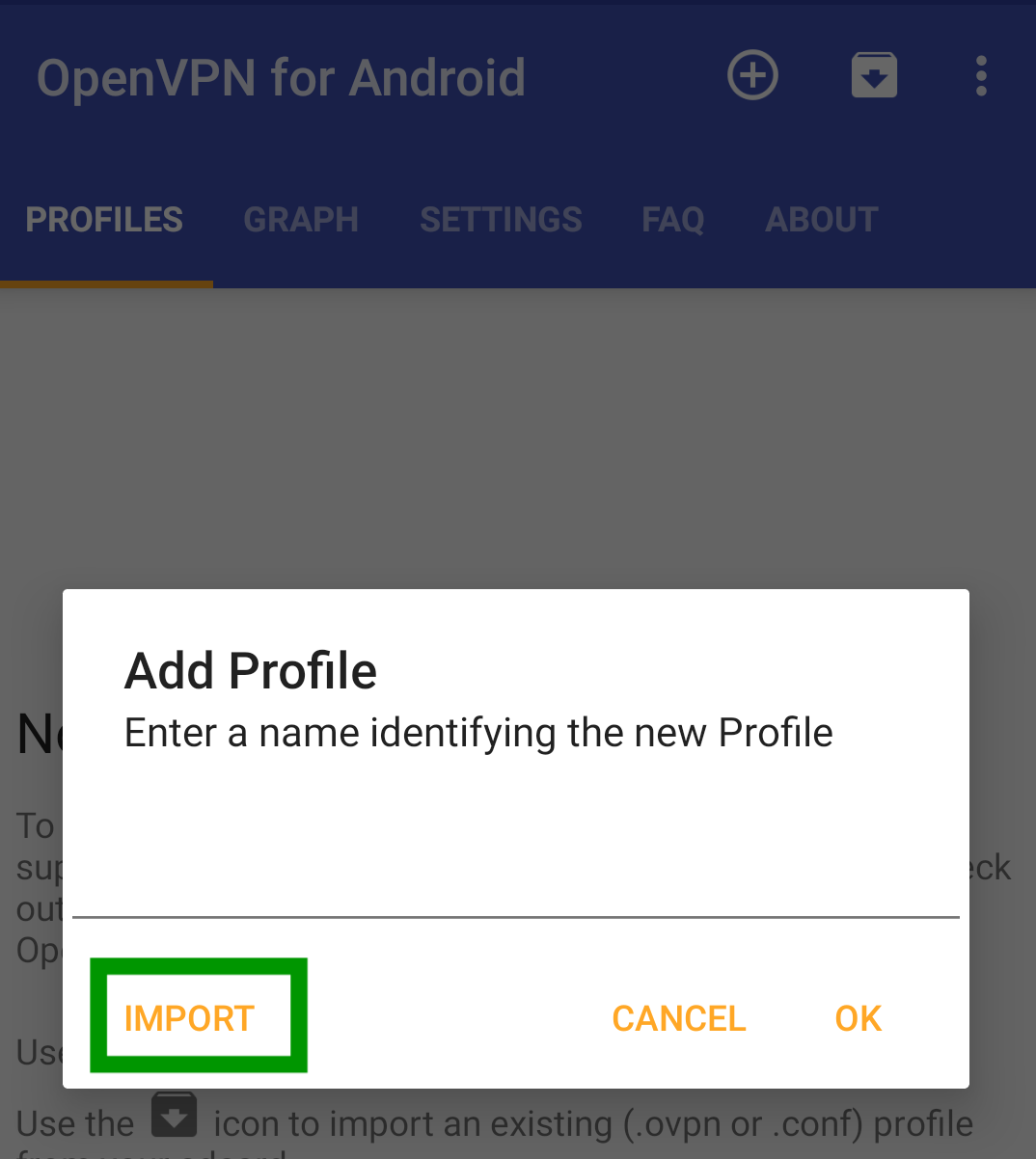 در این مرحله باید فایل کانفیگ EraVPN را به اپلیکیشن OpenVPN وارد کنید.