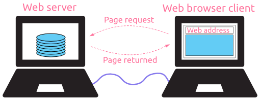 کلایِنت (Client) در واقع یک کامپیوتر دیگر، مانند لپتاپ یا تلفن همراه شما است که درخواستِ مشاهده، دانلود و یا استفاده از محتوا را دارد. کلایِنت میتواند از طریق شبکه برای تبادل اطلاعات اتصال برقرار کند. به عنوان مثال، هنگامی که صفحهی جستجوی گوگل را با مرورگر وب خود درخواست میکنید، کامپیوتر شما در جایگاه کلایِنت قرار میگیرد. در مثال زیر، دو کامپیوتر به وسیلهی کابل اِتِرنت (Ethernet) به یکدیگر متصل شدهاند. این کامپیوترها قادر به تشخیص یکدیگر و برقراری ارتباط از طریق کابل هستند. کامپیوتر کلایِنت از کامپیوتر سِرور یک وبسایت را درخواست میکند. وبسایت از سِرور تحویل گرفته میشود و در مرورگر وبِ کلایِنت نمایش داده میشود.