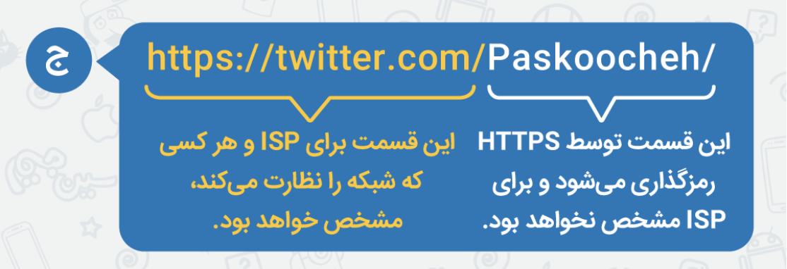 « وقتی در سایتهایی مثل توییتر - که از شیوهی رمزگذاری HTTPS استفاده میکنند - فعالیت میکنم، ISP من چه اطلاعاتی از فعالیتهایم را میبیند؟ »