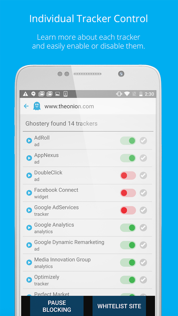 مرورگر Ghostery به شما کمک میکند تا با آگاهی تصمیم بگیرید که در هنگام بازدید از سایتهای مختلف چه اطلاعات شخصیای را با ردیابهای تبلیغاتی به اشتراک میگذارید.