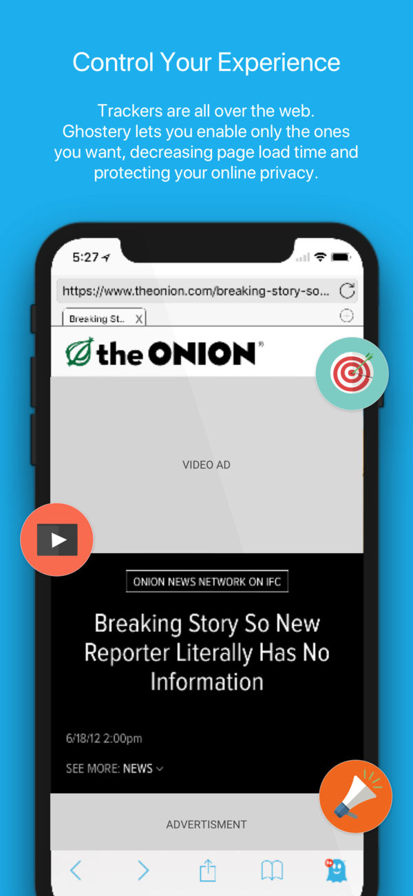 مرورگر Ghostery به شما کمک میکند میزانِ دسترسی شخص ثالث به دادههای شما (که از طریق ردیابها میسر میشود) را به حداقل ممکن برسانید و خود را محافظت کنید. و با حجمِ تنها ۲.۱ مگابایت، از مرورگرهای دیگر سبکتر است و در مصرفِ باتری دستگاهتان صرفه جویی میکند.