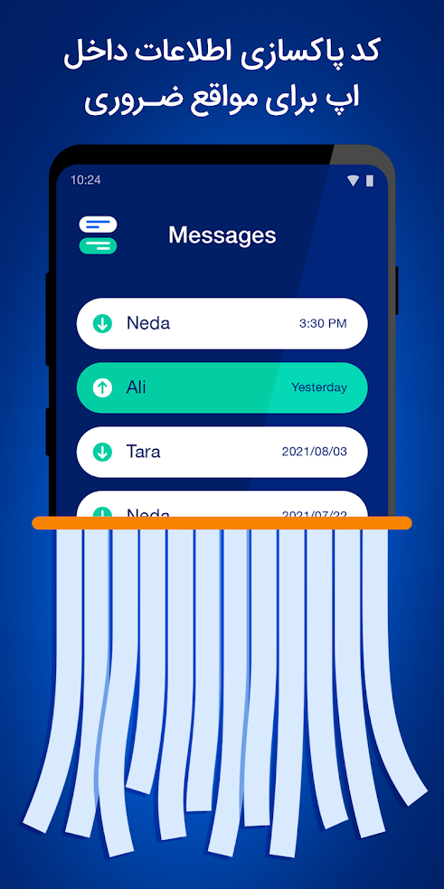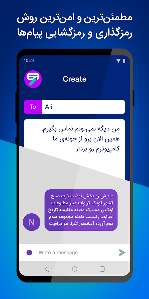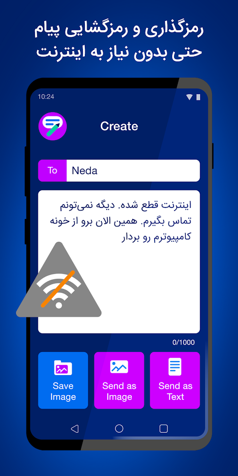 این اپلیکیشن از هیچ سروری جهت ارسال یا دریافت یا رمزگذاری پیام های شما استفاده نمی کند